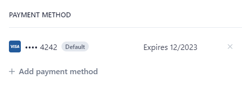 You can view and change your payment method. If you wish to change your card details press the "+ Add payment method" button: